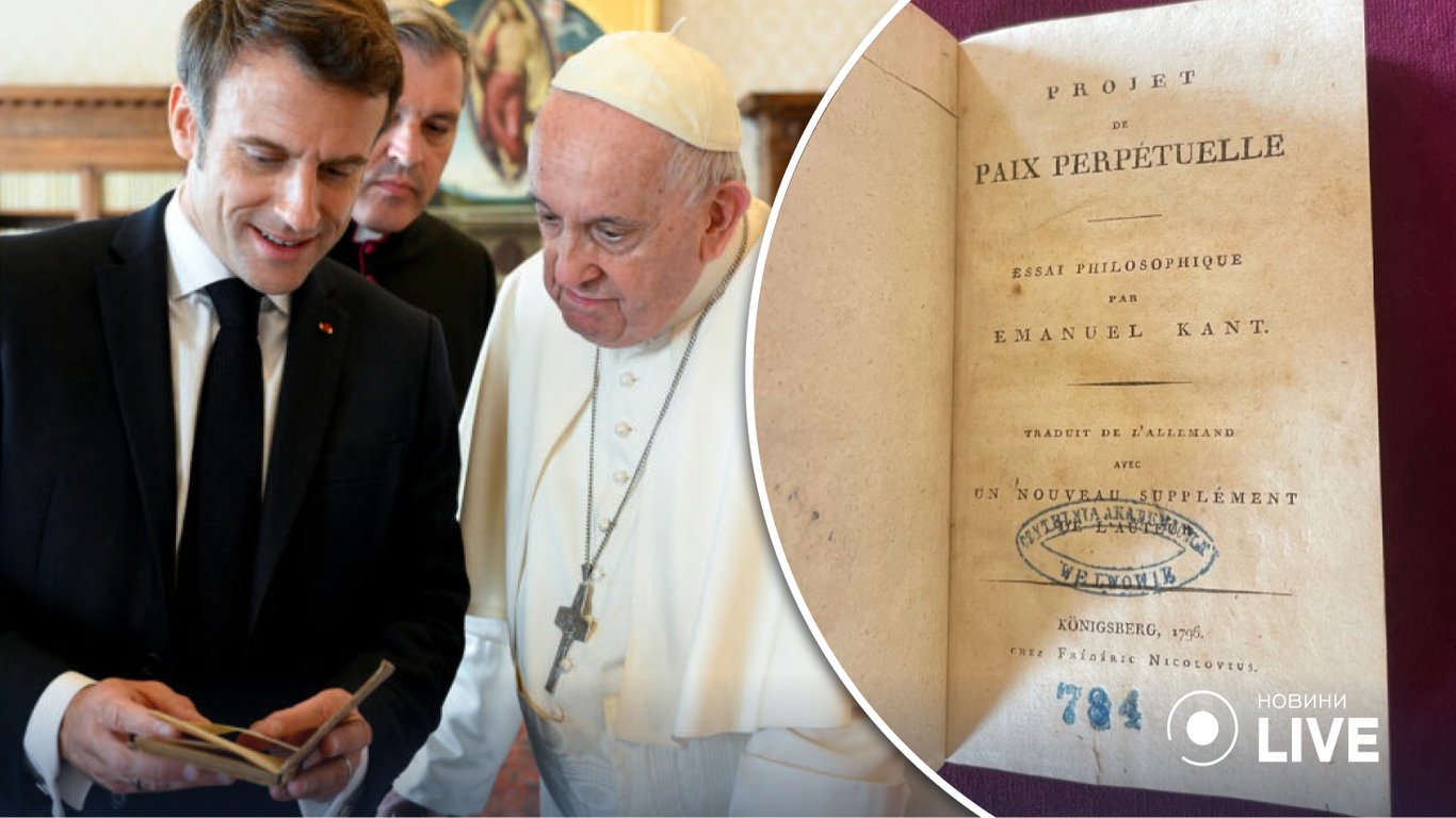 Президент Франції Еммануель Макрон подарував Папі Римському рідкісне перше видання книги філософа Іммануїла Канта "Про вічний мир" з львівською печаткою. Такий подарунок викликав скандал.