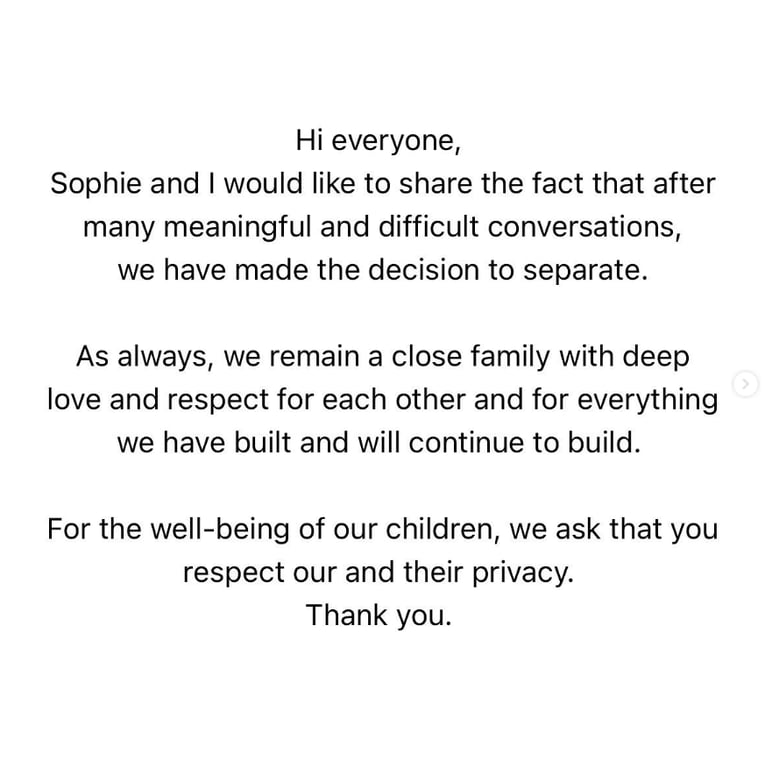 "Як завжди, ми залишаємося близькою сім'єю з глибоким коханням і повагою одне до одного і до всього, що ми побудували та продовжуватимемо будувати", — йдеться у дописі.