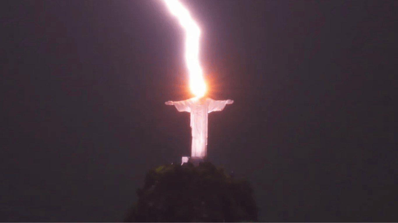 На кадрах видно, как молния попадает прямо в статую Христа-Спасителя.