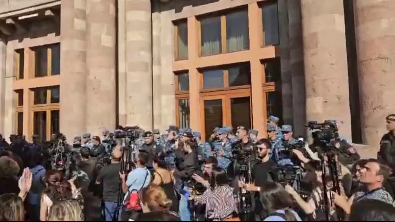 Декілька сотень людей вийшли до будівлі уряду. Вони звинувачують прем'єр-міністра Нікола Пашиняна у тому, що його політика призвела до нинішньої ситуації у Нагірному Карабасі. Люди викрикують: "Нікол — зрадник!" і "Соромно!".